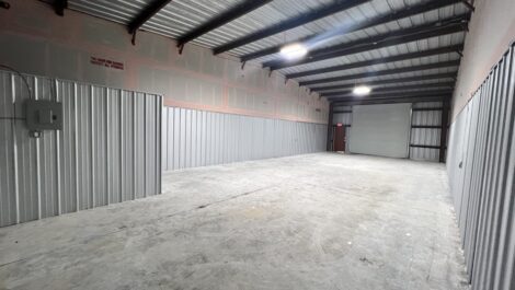 Private Restroom, Lighting, Power Outlets, 12 ft.2 Garage Doors, and Side Entry Door