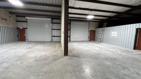 2 Private Restrooms, Lighting, Power Outlets, 4 Offices, Reception Area, 12 ft. Garage Doors, and Side Entry Doors